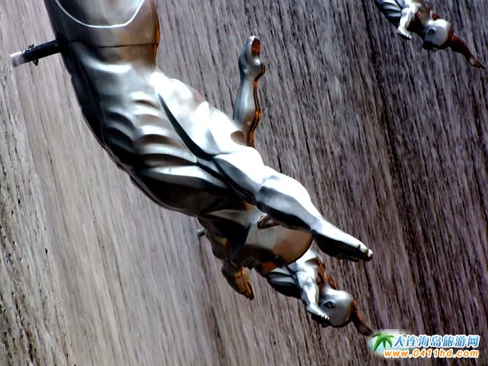 迪拜購物中心中的人工瀑布景觀,構成了現代商業空間的新構思、新發展,購物中心的中庭空間歷來是設計師精心設計的地方,中庭空間中設置瀑布景觀將中庭設計帶來了新的思路。每一件雕塑作品都是一個高臺跳水的動作,并且動作相同,整齊劃一,吸引了不少游客駐足拍照。