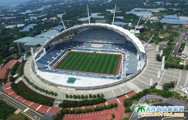 韓國濟州島西歸浦2002年世界杯體育場位于位于濟州道西歸浦市,整個足球場占地面積134122平方米,建筑面積22188平方米,足球場1999年動工興建的,2001年12月9日正式建成,濟州島西歸浦體育場總投資近一億美元。場地長117米,寬78米,觀眾席42256個。雖然投資規模是韓國新建的世界杯足球場中最小的,但卻與漢城世界杯足球場一起被公認為韓國最好的兩座足球場。