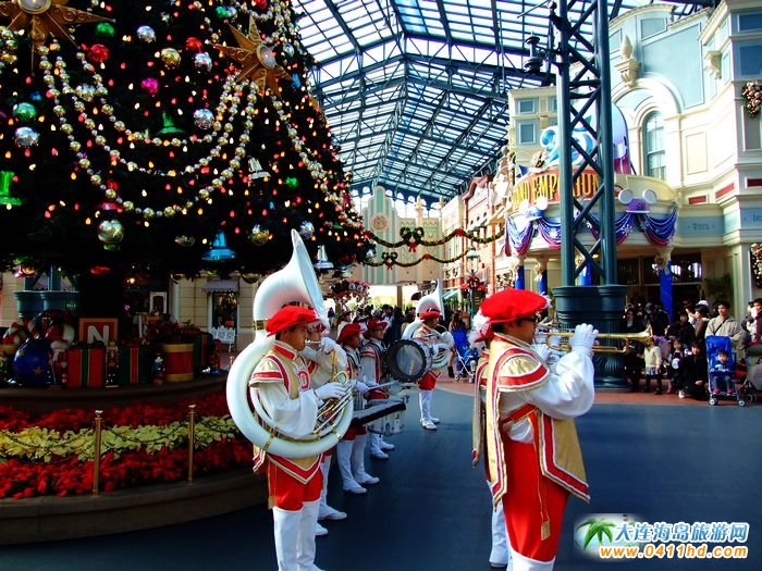 走進(jìn)日本東京迪士尼樂園,這里到處都洋溢著圣誕節(jié)的色彩,大大的圣誕樹聳立在那里,樂園的樂隊(duì)也演奏著歡快的樂曲。各種的迪士尼卡通雕塑到處可見,穿著歐洲中世紀(jì)服飾的表演者,將這里的氣氛活躍起來。