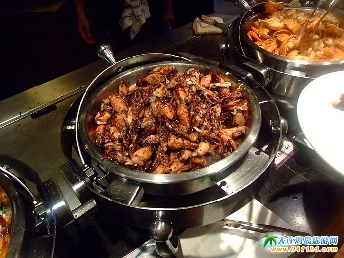 無限量的提供用紅酒煎炒出來的龍蝦,來自于日本的冰鮮高腳蟹,切的整整齊齊的金槍魚,烤制的正宗牛排等,幾十個品種的美味,絕對讓你食指大開。