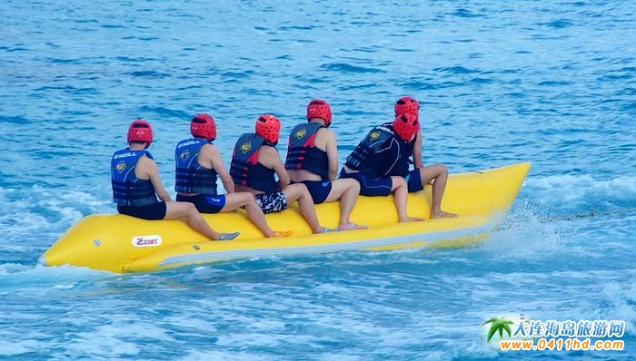 在眾多的塞班島旅游娛樂項目,香蕉船是最受歡迎的一個活動,一艘飛馳的大馬力快艇拖曳著一條類似香蕉形狀的橡皮船,幾個人坐在上面,在藍天碧海之間穿梭,驚險刺激,將歡快化作尖叫暢快的釋放,不僅僅考驗你的膽量同時也在考驗你的肺活量。