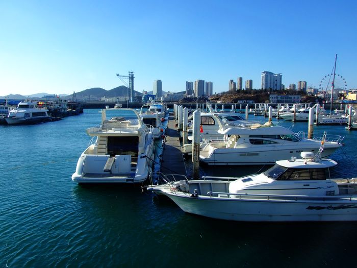 大連星海灣游艇碼頭目前可停泊游艇200艘。目前是大連最大的游艇?看a頭。